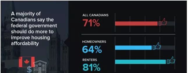 調(diào)查還顯示,多數(shù)加拿大人認(rèn)為聯(lián)邦政府在減輕房屋負(fù)擔(dān)方面做得不夠,全部加拿大人中,71%的人希望政府采取行動,做得更多更好,減輕民眾的房屋負(fù)擔(dān);有房業(yè)主中有64%的這么看;而租戶中呼聲更為強(qiáng)烈,高達(dá)81%的人有這個要求。