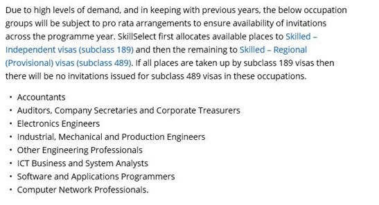 移民局剛剛公布了03月07號的EOI邀請報(bào)告。同時(shí)也公布了本財(cái)年的熱門職業(yè)(Pro Rata)職業(yè)。2017-18財(cái)年的熱門職業(yè)有8類,主要有會計(jì)、審計(jì)、計(jì)算機(jī)2611、計(jì)算機(jī)2613、計(jì)算機(jī)2631、2339 Other Engineering Professional其他工程大類,2334 Electronics Engineer 電子工程大類、2335 Industrial 和Mechanical and Production Engineers機(jī)械工程大類。