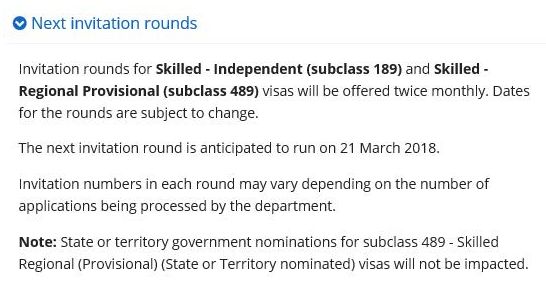 ? 邀請分?jǐn)?shù):相比189而言,190和489州擔(dān)保技術(shù)移民的不需要那么高的邀請分?jǐn)?shù)(60分和65分即可獲得邀請),但是目前189的邀請分?jǐn)?shù)都是70分或以上(熱門和非熱門職業(yè))。