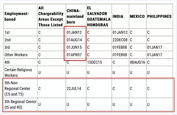 在排期表中,EB-1類別中國(guó)區(qū)排期大倒退,排期日期2012年1月1日,意味著2018財(cái)年EB-1的配額已經(jīng)用完了。