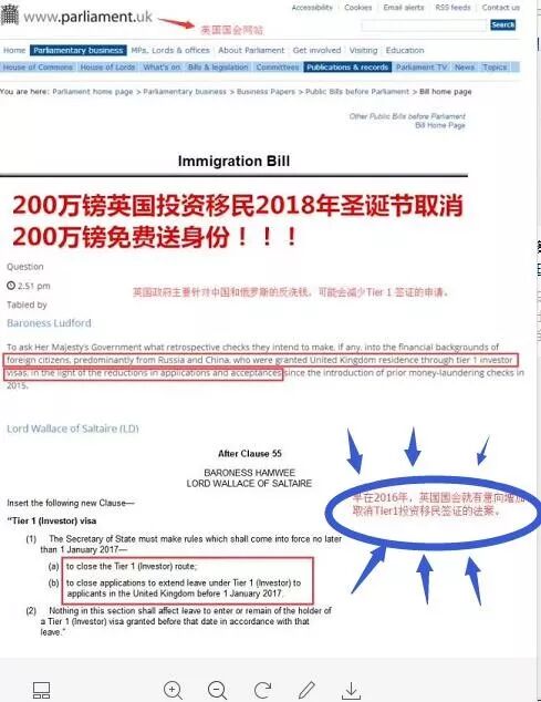 真實(shí)的情況是2014年11月6日,英國移民局將英國投資移民投資額從100萬英鎊升至200萬英鎊,原本預(yù)期引入更多的投資金額。但是2015年的實(shí)際操作人數(shù)大幅下降,導(dǎo)致整體引入資金遠(yuǎn)遠(yuǎn)少于之前。因此,由HAMWEE男爵夫人和WALLACE OF SALTAIRE勛爵在2016年1月提出是否需要取消200萬英鎊僅保留500萬和1000萬英鎊的投資移民,草案在辯論階段即被撤回,根本沒有到立法階段。