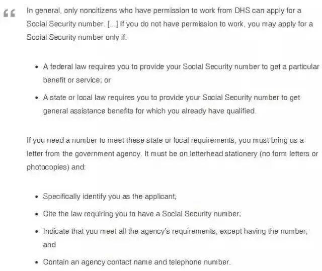 根據(jù)社保局SSA的規(guī)定,只有可以在美國合法工作的人才能申請SSN,SSA官網(wǎng)原文如下: