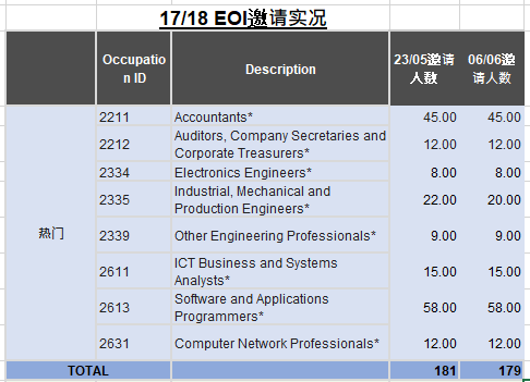 下附:6月6日最新EOI邀請官方數(shù)據(jù)