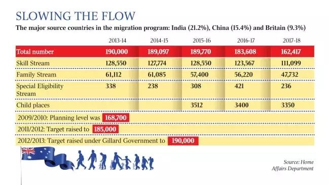 目前的移民人數(shù)已從以前的每年19萬人的峰值水平減少到不足163,000人。而2007-08年的記錄是158,630。