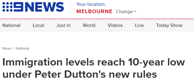 據(jù)《9 News》報道,官方數(shù)據(jù)顯示澳洲永久移民的接納數(shù)量已經(jīng)創(chuàng)下近10年來的新低!