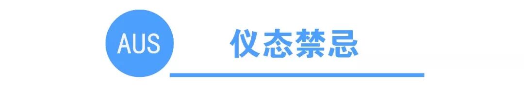 在澳洲的社交場合,忌諱伸懶腰,打哈欠等小動作。此外,很多澳洲男人不喜歡握住雙肩或是緊緊擁抱之類的舉動。