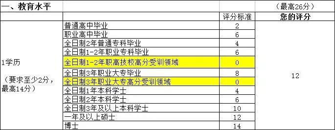 學(xué)歷分?jǐn)?shù)上,注意職高或大專學(xué)歷即使讀的專業(yè)是A/B類高分受訓(xùn)專業(yè)也不能額外加分哦。