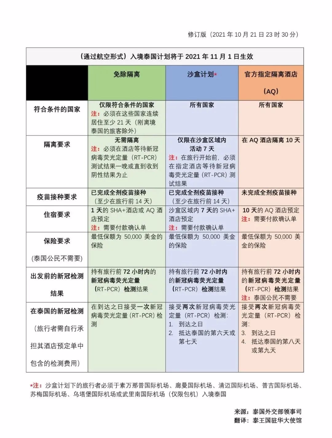 泰國(guó)政府將于11月1日起對(duì)包括中國(guó)在內(nèi)的46個(gè)國(guó)家和地區(qū)開(kāi)放游客入境免隔離政策,泰國(guó)駐華大使館最新發(fā)布航空形勢(shì)入境規(guī)定詳情表格。