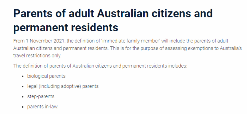 根據(jù)澳洲移民局官網(wǎng)的最新消息,從11月1日起,澳洲公民或永久居民的父母(包括親生父母、養(yǎng)父母、繼父母、配偶的父母)也可以直接申請(qǐng)入境澳洲啦!