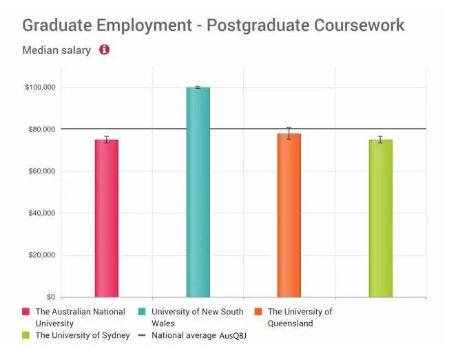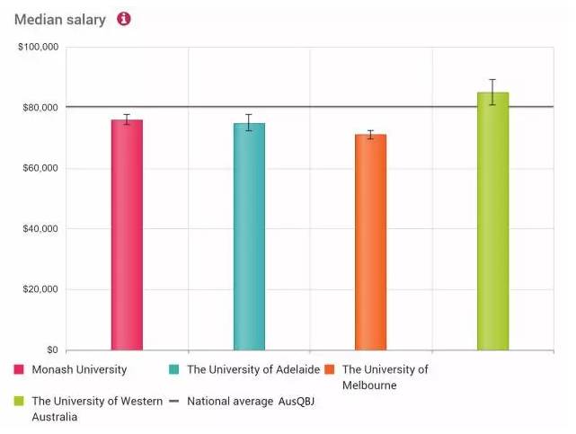 澳洲八大的畢業(yè)生年薪中位數(shù)對(duì)比。