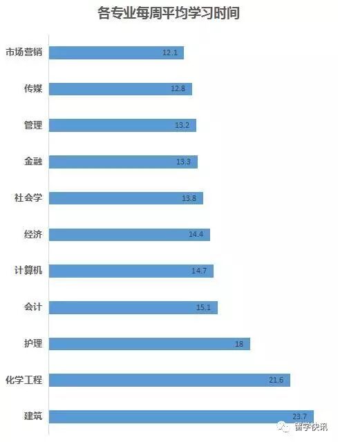據(jù)稱,曾做過調(diào)查,發(fā)現(xiàn)澳洲大學(xué)生中65%的人表示正在承受著各種壓力折磨,因此失眠和焦慮(仿佛看到了deadline前夕的你萌),這些壓力主要是源于學(xué)業(yè)、人際關(guān)系和經(jīng)濟等。 但是據(jù)觀察,留學(xué)生中還真不是所有人都壓力大,有的人的壓力源于“我有大把時間但我沒有男(女)票”當(dāng)然有的專業(yè)真的是…… 各專業(yè)的平均學(xué)習(xí)時間(澳洲常申專業(yè))