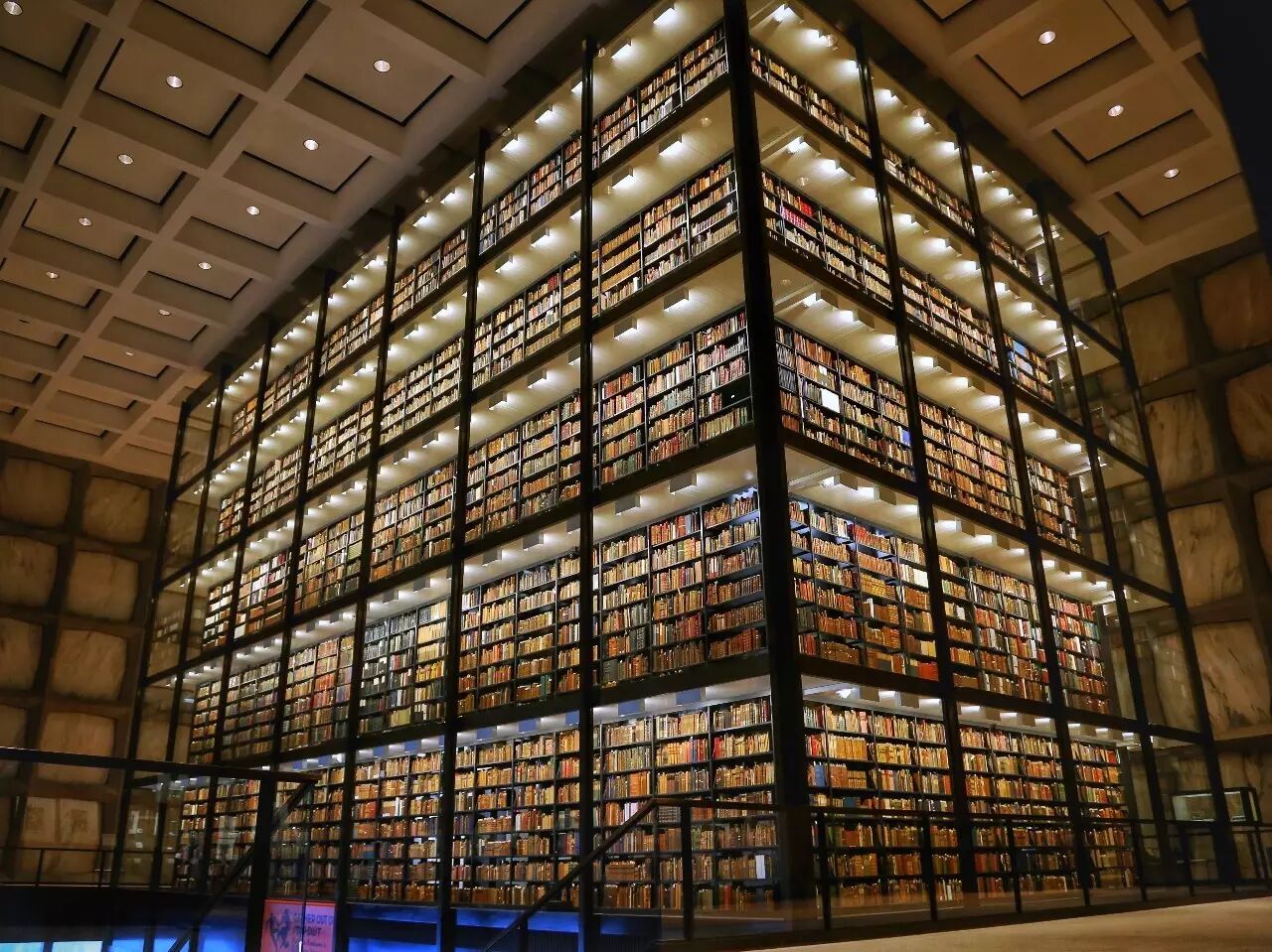 拜內(nèi)克古籍善本圖書館(Beinecke Rare Book and Manuscript Library)是世界上最大的收藏珍本與手稿的建筑,其收藏量達(dá)到了50萬(wàn)冊(cè)。