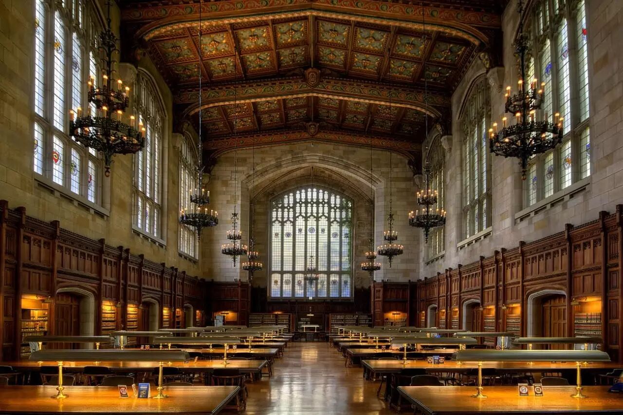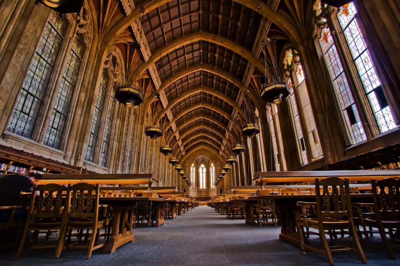 華盛頓大學(xué)最出名的還是它的閱覽室。龐大的內(nèi)部空間讓你踏入時(shí)不禁驚呼,圓弧拱門撐起高懸的屋梁,懸掛的金黃吊燈牽引著視線,建筑美在光影中變幻。正是這份恢弘與祥和的完美統(tǒng)一,讓人不禁聯(lián)想到了霍格沃茨魔法學(xué)校,華盛頓大學(xué)圖書館又有了“哈利波特圖書館”的別號(hào)。