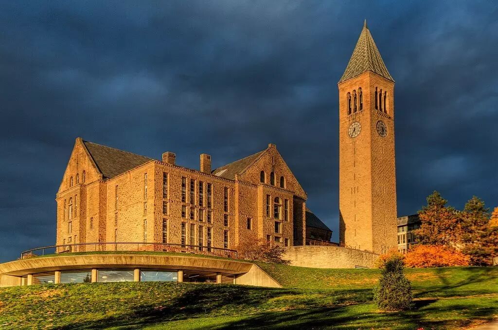 尤里斯圖書館(Uris Library)是康奈爾大學(xué)最古老的圖書館,也是全美最大的學(xué)術(shù)性研究圖書館之一。康奈爾大學(xué)的地標(biāo)性建筑麥格羅塔(McGraw Tower)就在尤里斯圖書館之上。173英尺的塔高大巍峨,顯示出常春藤名校的一番氣度。塔內(nèi)還有編鐘,夕陽西下時(shí)聽到學(xué)生們演奏的悠揚(yáng)編鐘聲。