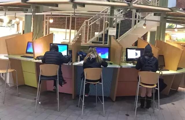 (美國(guó)東北大學(xué)各學(xué)院里隨處配備上網(wǎng)電腦,師生可憑借校園ID直接登錄到自己的windows界面)