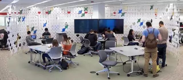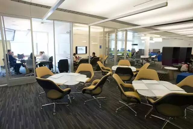 為了更加有效服務(wù)于互動(dòng)討論式授課模式以及學(xué)生的小組作業(yè)討論,美國(guó)大學(xué)的圖書(shū)館與教室里會(huì)放置有大量的白板、觸摸屏與活動(dòng)桌椅。