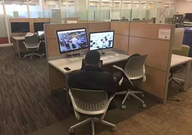 (美國(guó)東北大學(xué)在圖書(shū)館的自習(xí)室里為學(xué)生配備雙屏顯示器電腦)