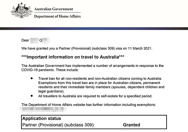 最終,Q女士成功獲得309簽證!