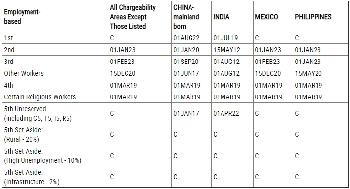 ? EB-5(預(yù)留類別:鄉(xiāng)村、高失業(yè)率、基建):無排期。
