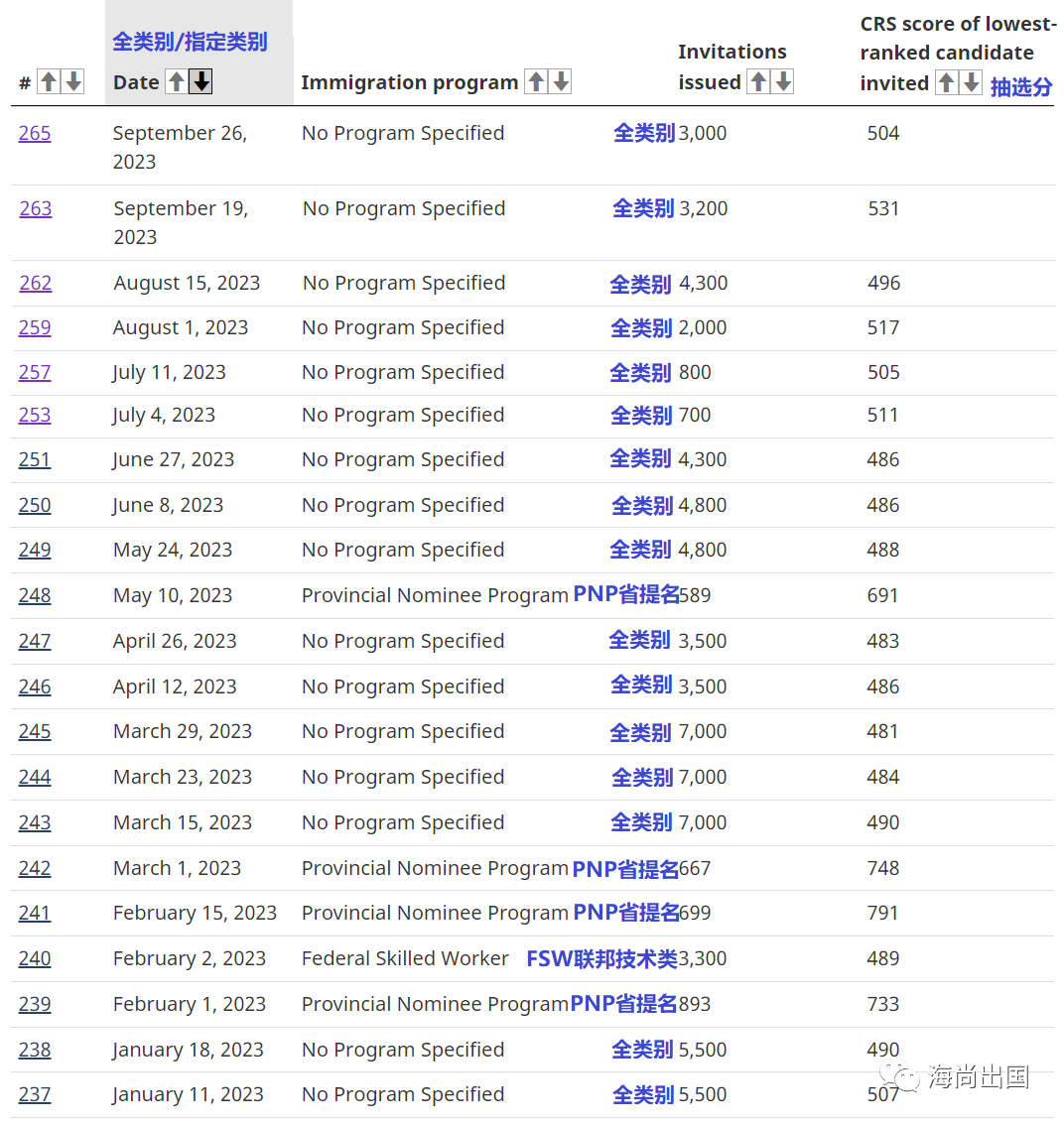 2023年9月26日加拿大聯(lián)邦技術移民快速通道(EE)進行了常規(guī)類抽選,本次常規(guī)類抽選一共邀請3000人,最低邀請分數(shù)為504分。