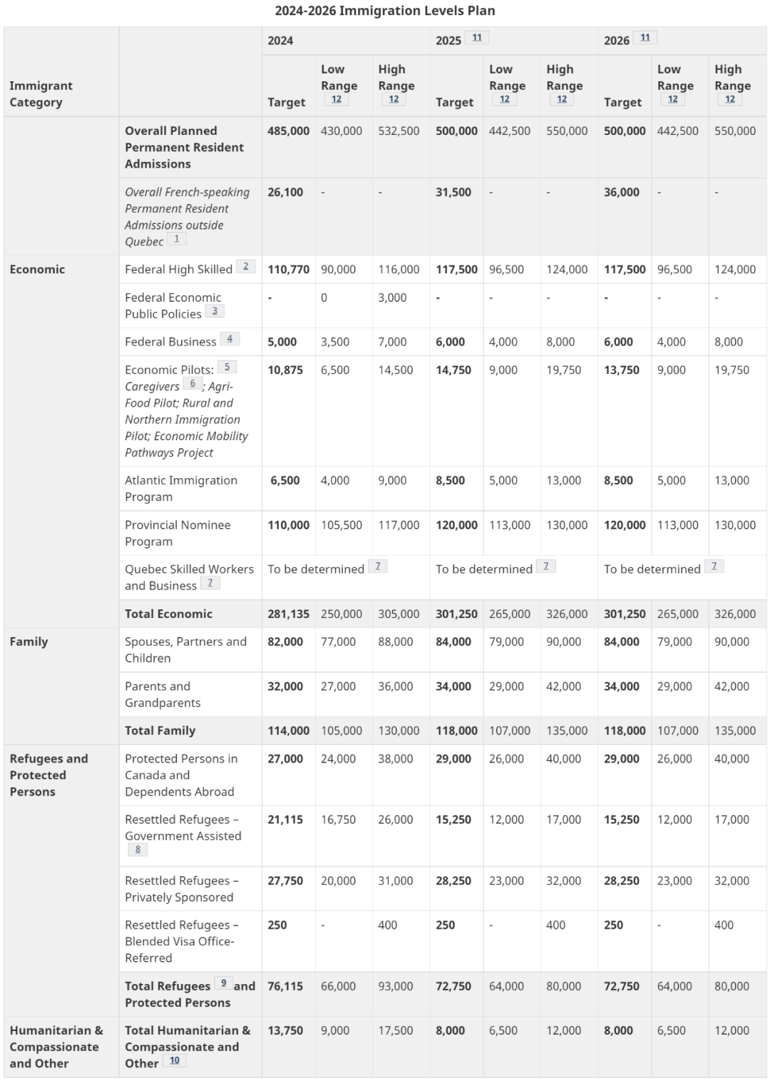 當(dāng)?shù)貢r間11月1日,加拿大移民部正式發(fā)布了《2024-2026年移民水平計劃》,涵蓋了各種類型的移民,旨在實現(xiàn)經(jīng)濟(jì)增長、支持家庭團(tuán)聚、響應(yīng)最近幾年移民數(shù)量的快速增長。