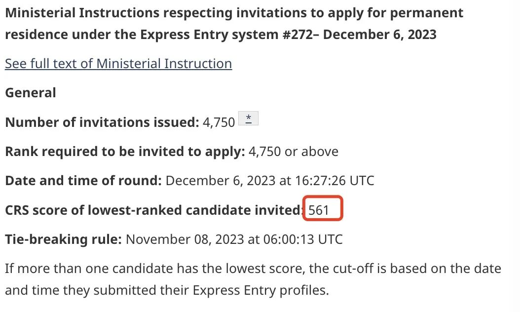 當?shù)貢r間12月6日,加拿大移民部(IRCC)進行了12月第一輪的EE快速通道抽簽,邀請分數(shù)561分,達到了歷史新高!
