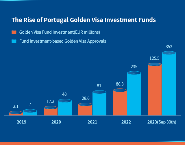 2023年10月7日起,葡萄牙黃金簽證終結(jié)房產(chǎn)選項(xiàng),直接和間接購房都不行,這改變了葡萄牙投資者的觀點(diǎn),因此市場參與者不得不將注意力轉(zhuǎn)移到其它領(lǐng)域。投資基金成為迄今為止對(duì)投資者最具吸引力的投資選項(xiàng)之一,恢復(fù)了自2019年以來的趨勢。