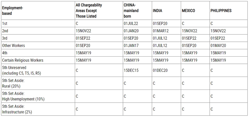 ? EB-3:排期為2020年9月1日,原地踏步;非技術(shù)勞工排期為2017年1月1日,原地踏步;