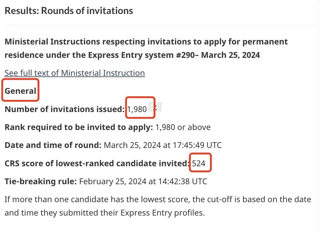 3月25日,加拿大移民部(IRCC)進(jìn)行了針對(duì)EE全類別的抽簽,邀請(qǐng)分?jǐn)?shù)為524分!