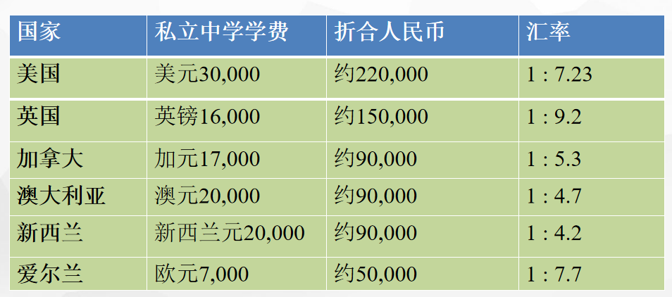 六大英語國家私校學(xué)費(非留學(xué)生身份)對比