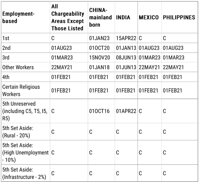 簽證預(yù)留類別為:C,無官方排期;