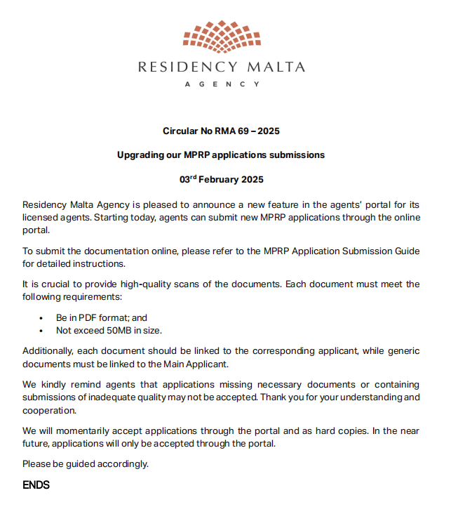 2025年2月3日,馬耳他身份局發(fā)布官方通告,宣布為其持牌代理提供了一項(xiàng)新功能,代理人可以通過在線門戶網(wǎng)站提交新的MPRP申請(qǐng),線上遞交申請(qǐng)門戶正式啟用。這一重大舉措標(biāo)志著馬耳他投資移民計(jì)劃進(jìn)入數(shù)字化新紀(jì)元,為全球投資者帶來更高效、更便捷的申請(qǐng)?bào)w驗(yàn)。