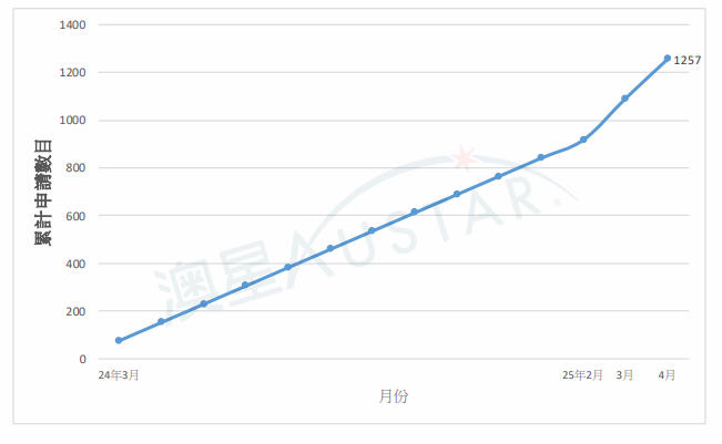 申請數(shù)字按月穩(wěn)步上升,截至2025年4月累計接獲申請共1,257宗。于2025年3月推行優(yōu)化措施后,申請數(shù)字更加地明顯增幅,較2月上升逾440%,反映出申請人及市場對CIES的信心日益增強。